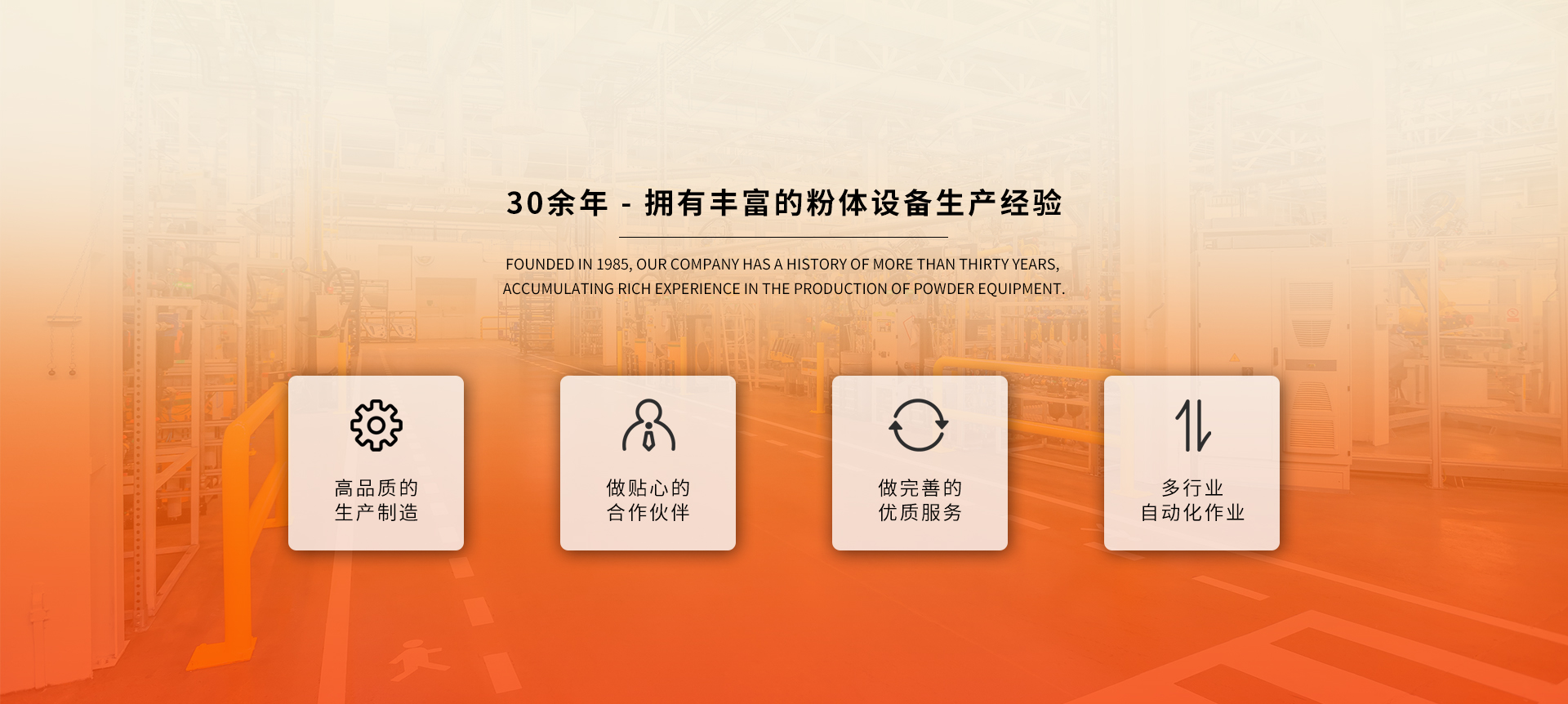 公司于1985年創立,至今已有30余年歷史,擁有豐富的粉體設備生產經驗。